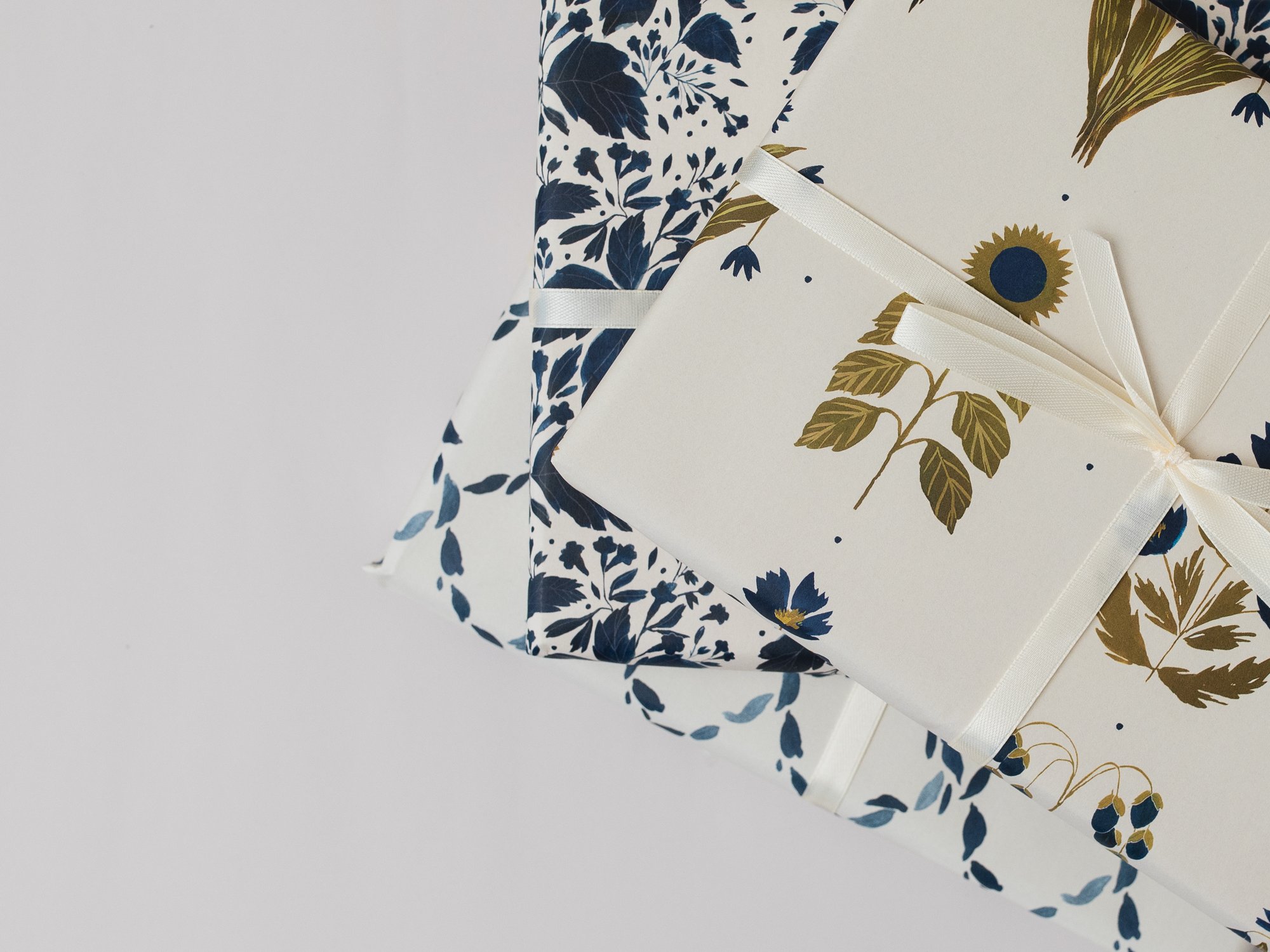 FOUR FLORAL BLUE BOTANICAL LUXURY GIFT WRAP PAPERS
